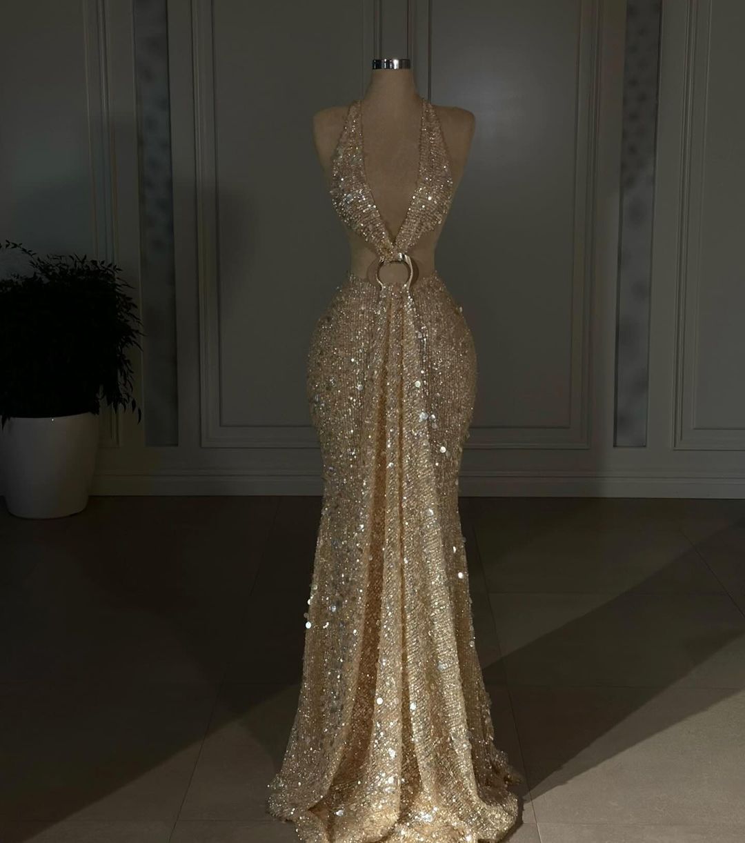 Sequins Halter V-neck Mermaid Prom Dress ssr0530