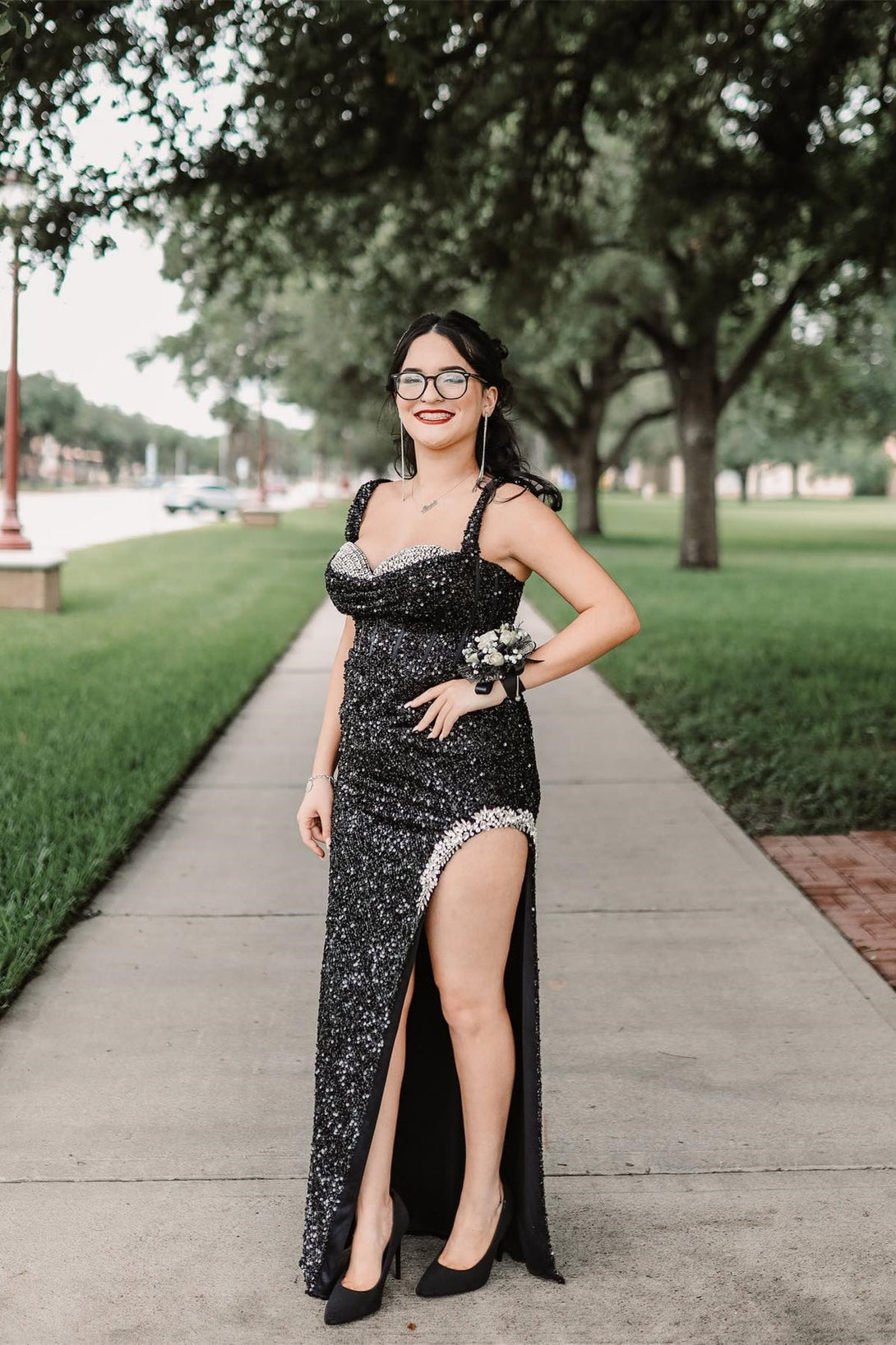 Sexy Black Sequin Tight Long Formal Dress with Slit