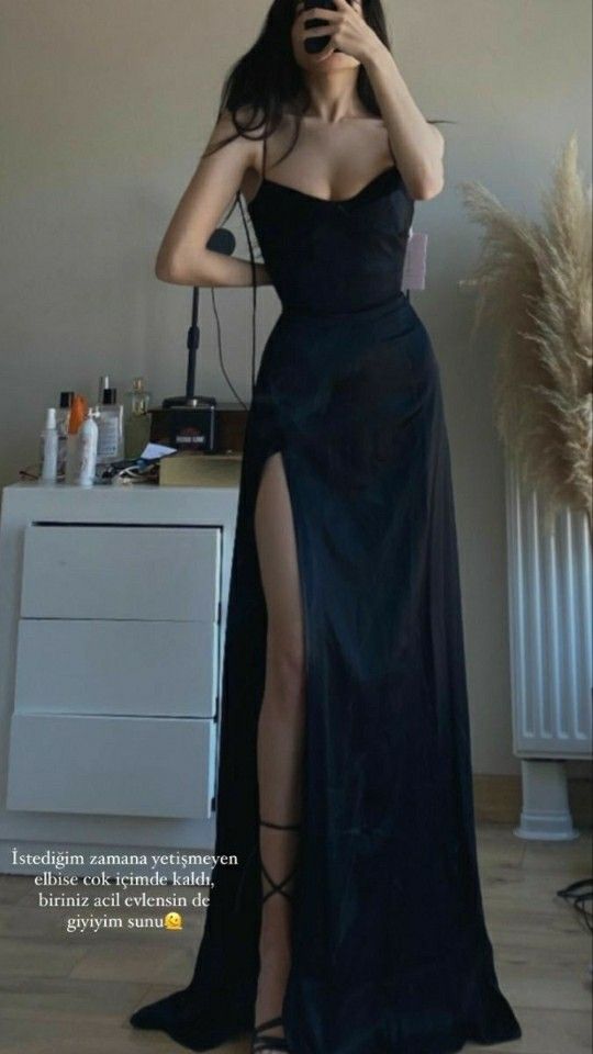 Sexy Black Spaghetti Straps Long Prom Evening Dresses