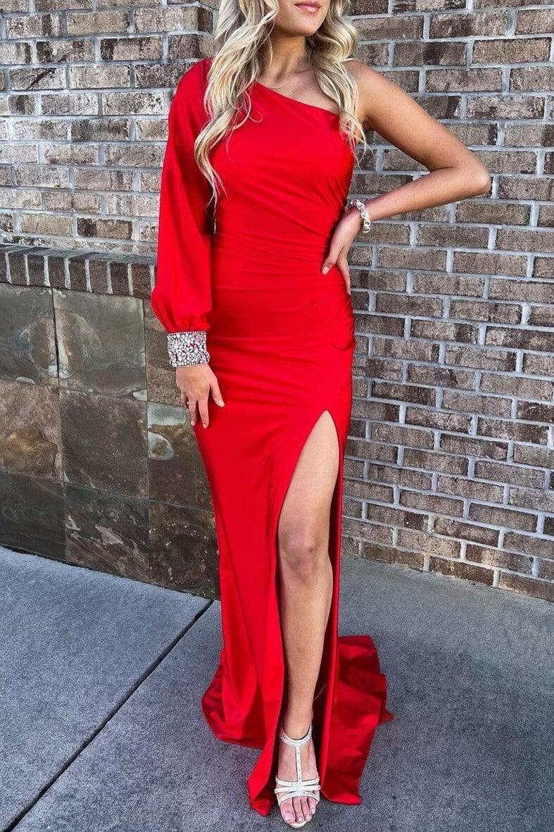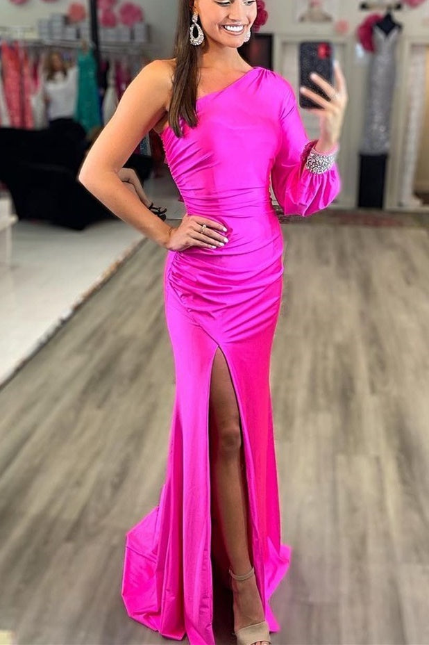 Sexy One Shoulder Long Sleeve Royal Blue Mermaid Party Dress