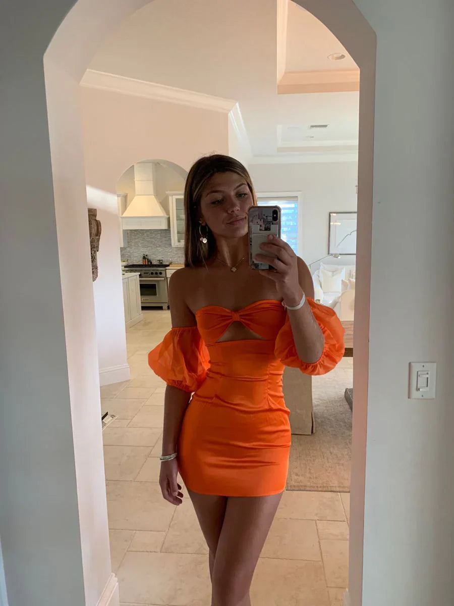 Sexy Orange Satin Mini Homecoming Dress Cocktail Dresses