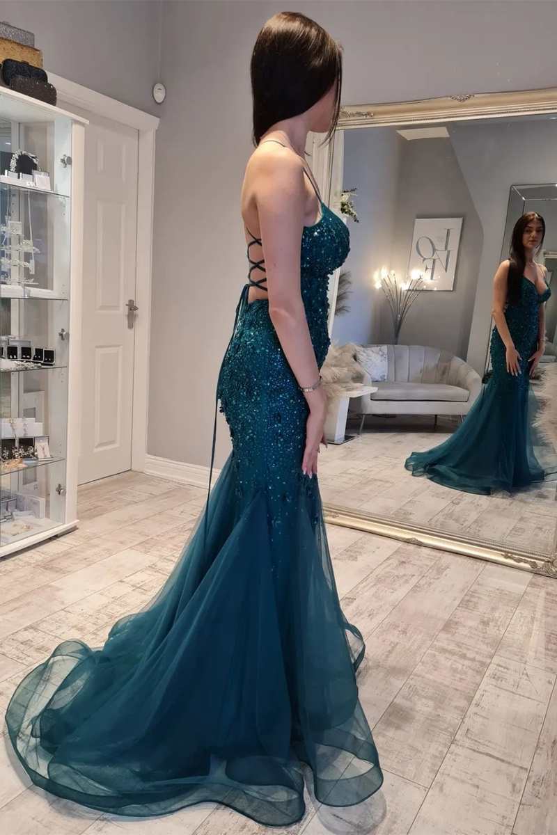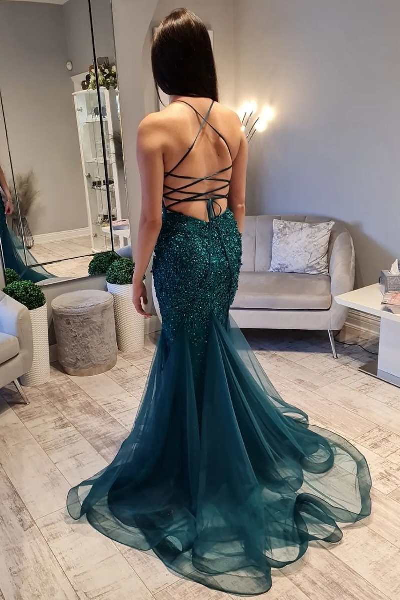 Sexy V-Neck Floral Beaded Mermaid Long Prom Dress