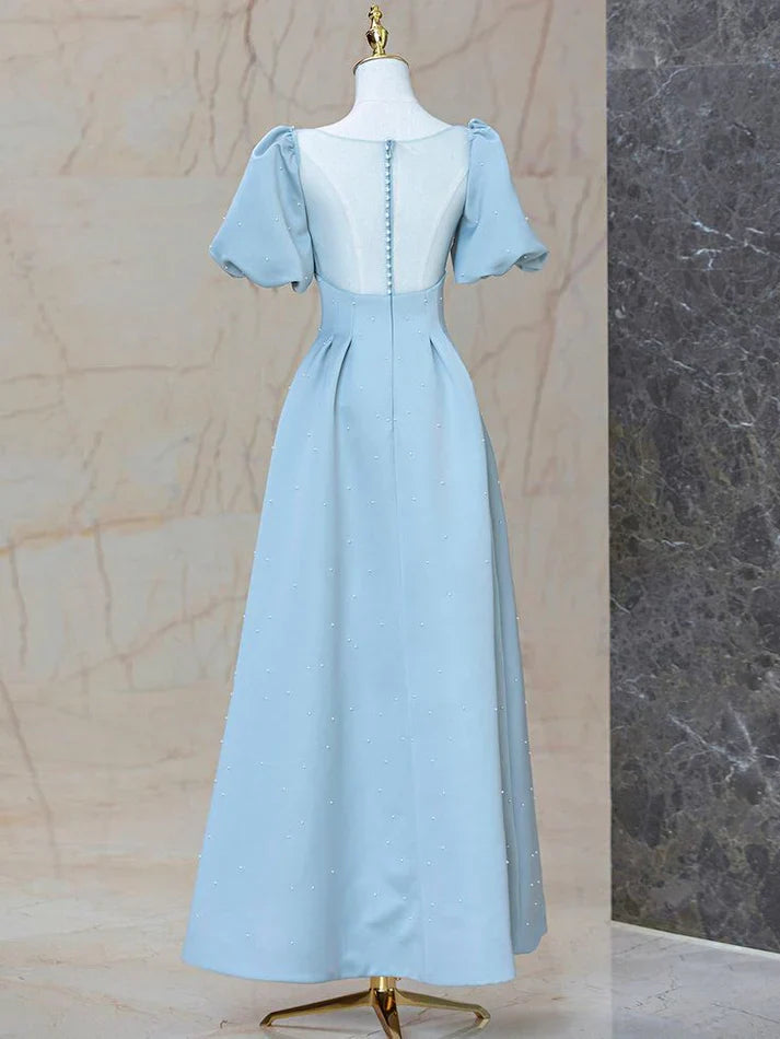 Dress Elegant Satin Pearl Long Prom Dress A-Line Evening Party Dress Formal Dress