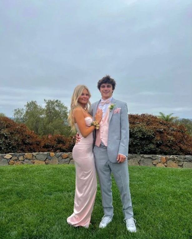Pink Sweetheart Straps Sheath Satin Prom Dress Long Evening Party Dress Formal Dress With Slit