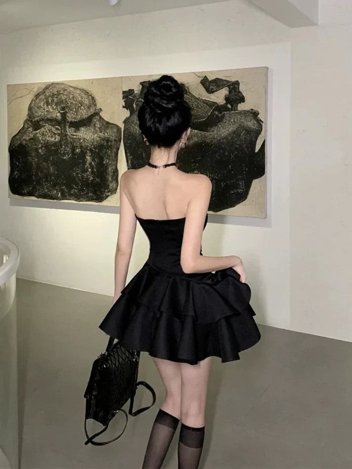 Dress Strapless Black Satin Homecoming Dress 21st Birthday Outfit Simple Party Dress