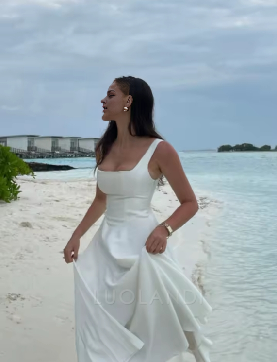 Elegant Women's Dress Fashion Square Neck Sleeveless A-line Simple Party Dress Beach Party Streetwear Formal Dress
