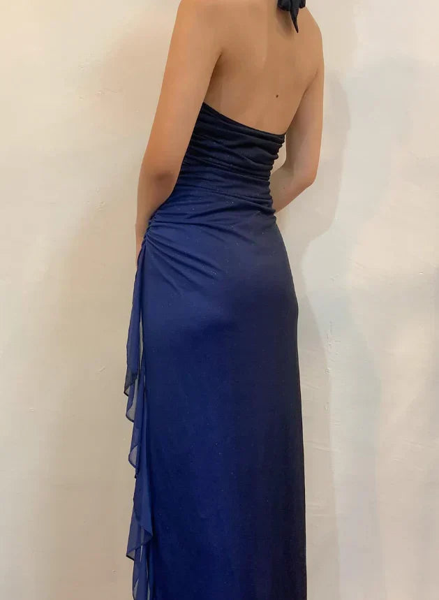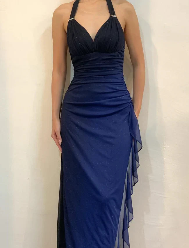 Halter Navy Blue Long Chiffon Prom Dress Elegant Evening Party Dress Formal Dress