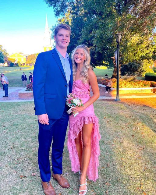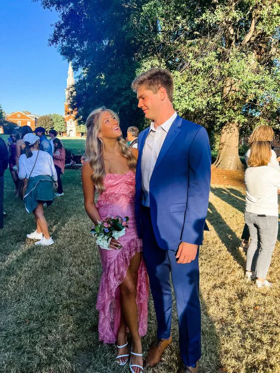 Sexy Strapless Lace Ruffle Prom Dress Long Party Dress Charming Graduation Dress