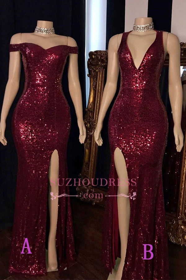 Shining Side-Split Red Sheath Sequin-Lace Evening Dresses,SSR1162