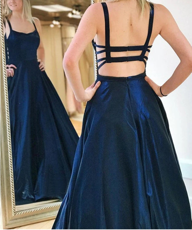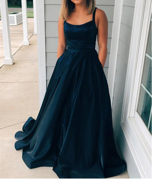 Simple Spaghetti Straps A-line Prom Dresses Floor Length Evening Dresses Party Dress