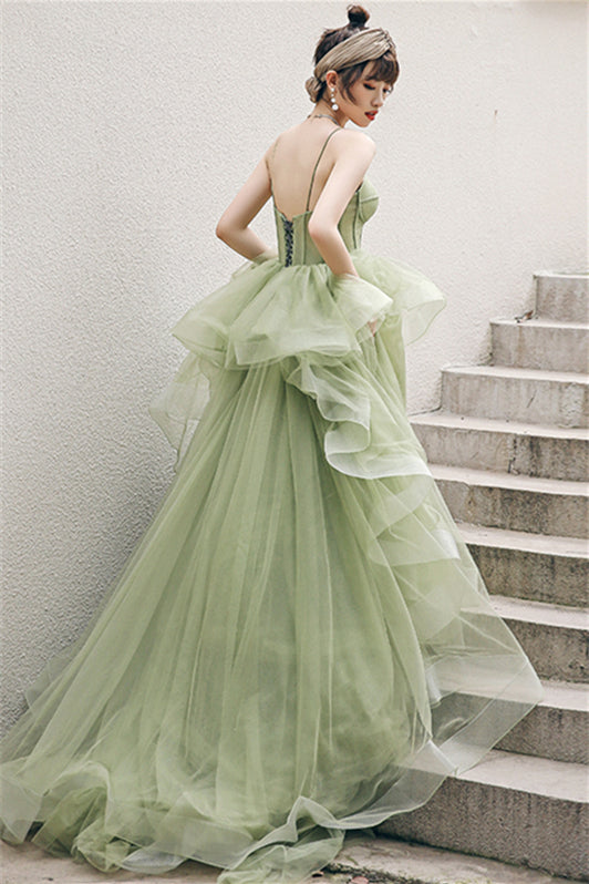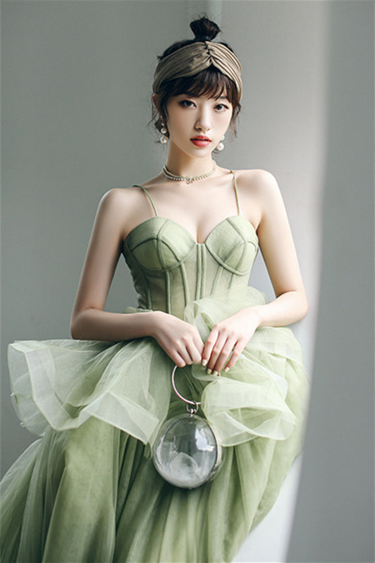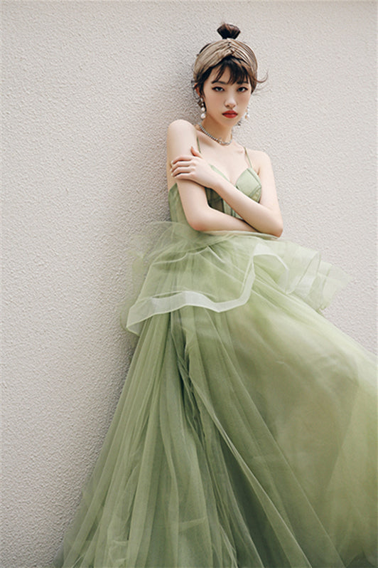 Spaghetti Straps A-line Sage Green Long Formal Dress