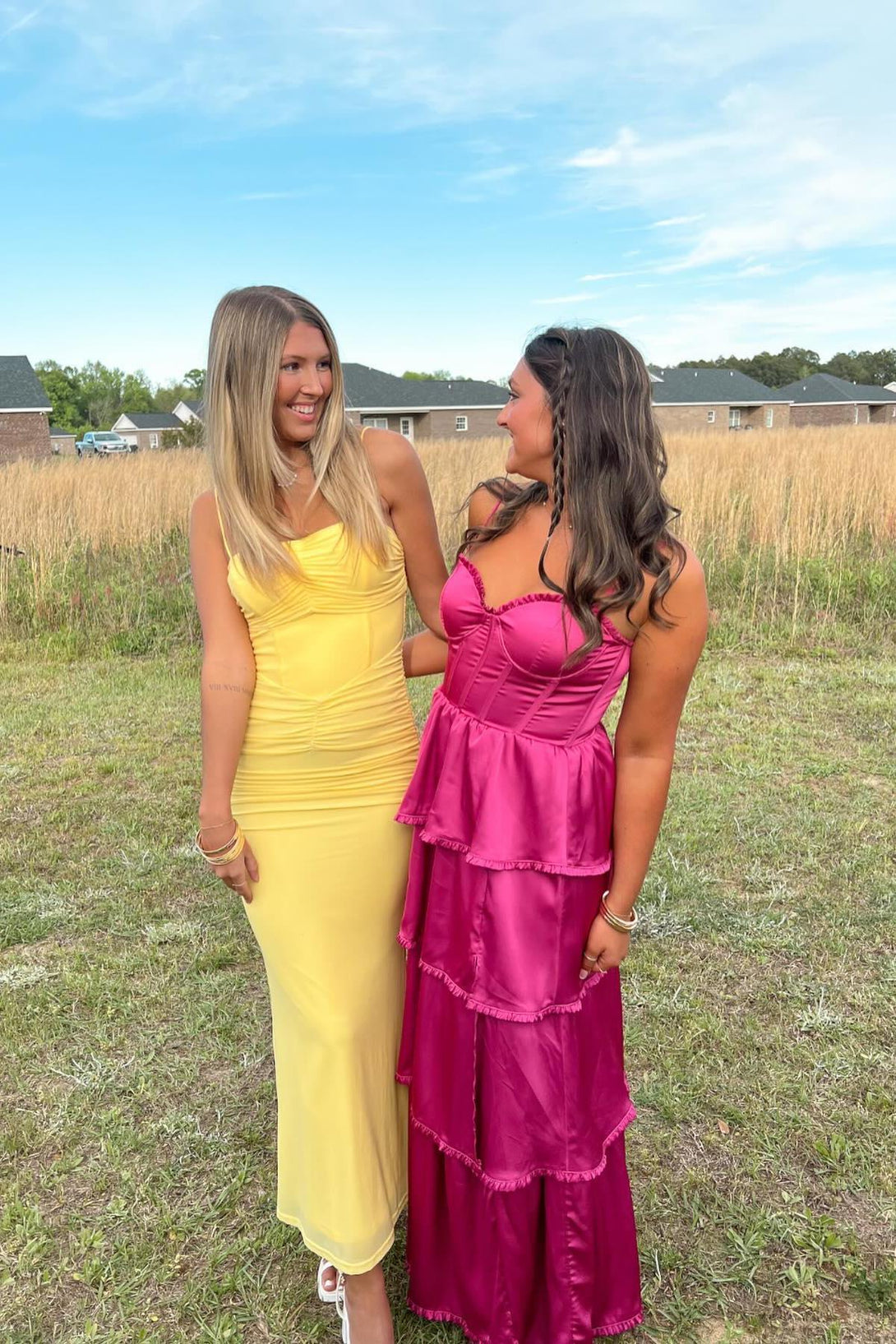 Spaghetti Straps Blue Soft Satin Layered Long Formal Dress
