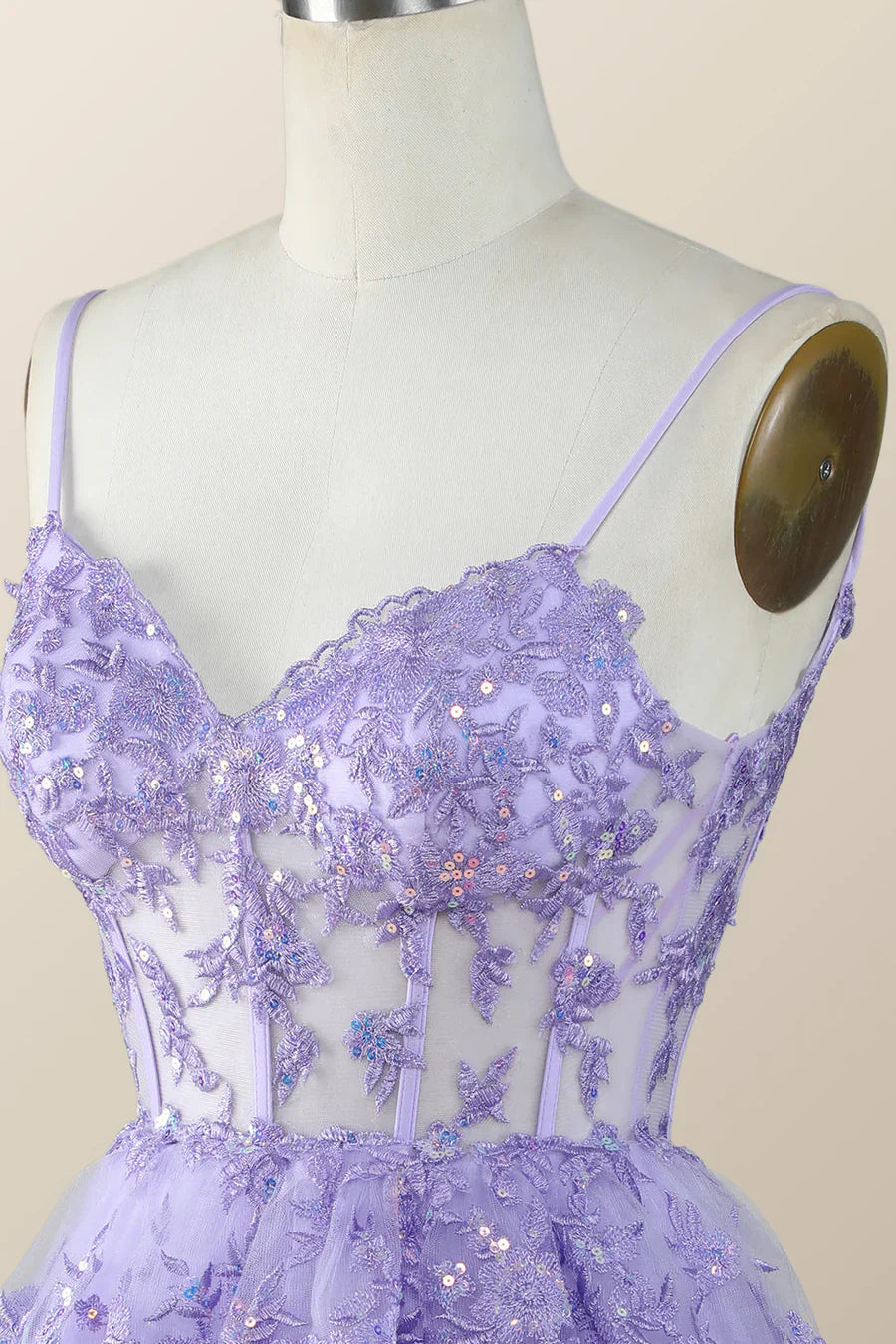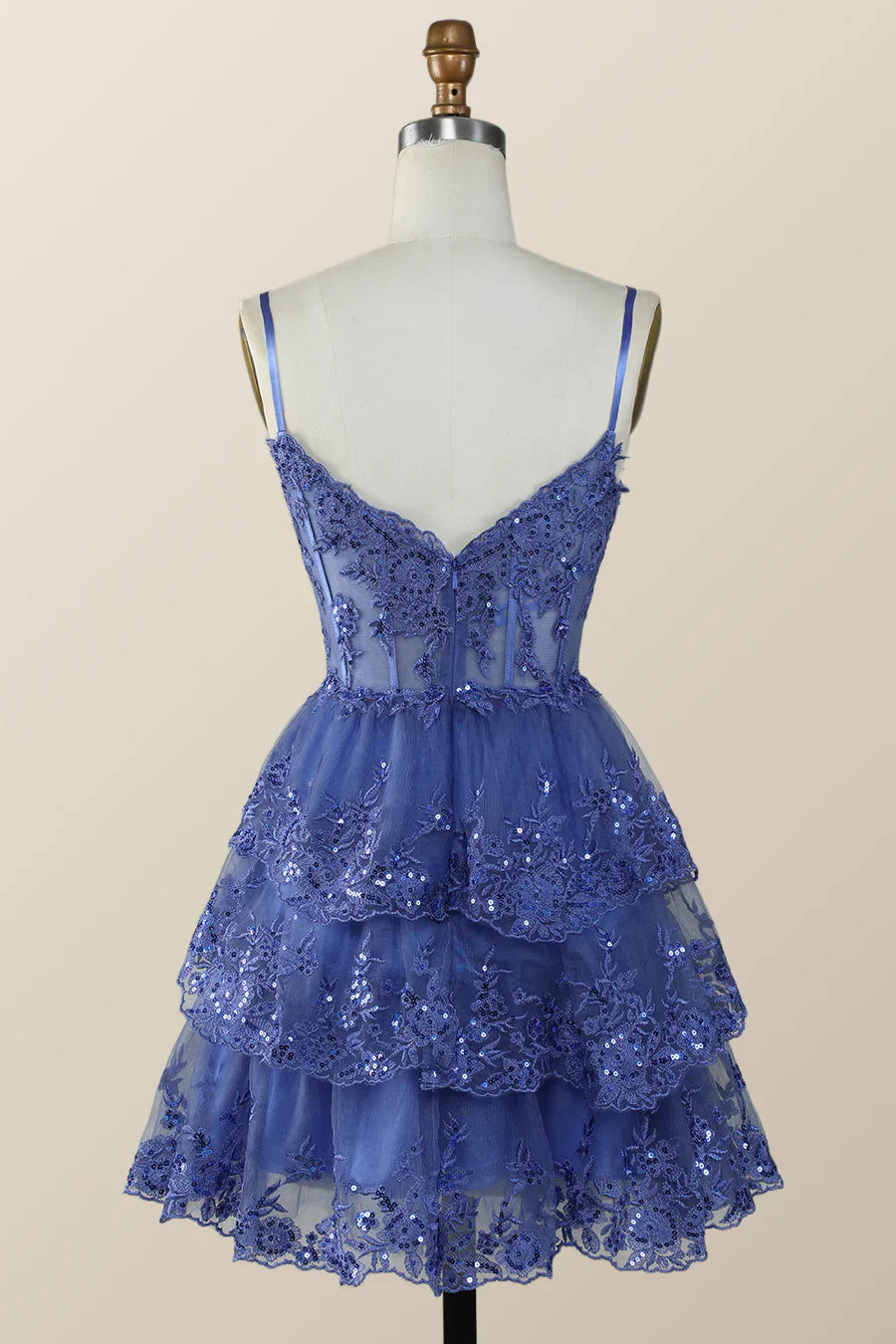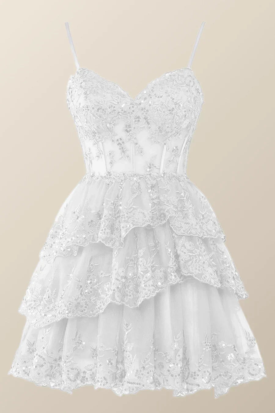 Spaghetti Straps Ruffle Lace Sequin Homecoming Dresses