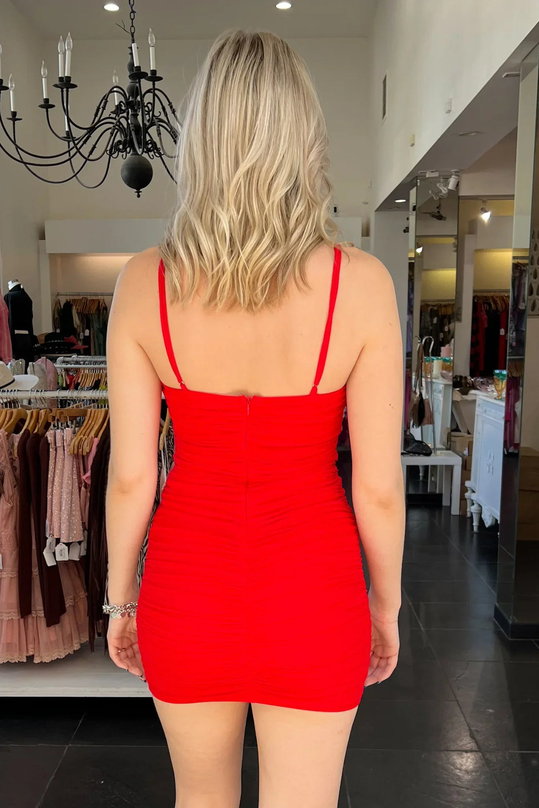 Spaghetti Straps Satin Bodycon Homecoming Dress
