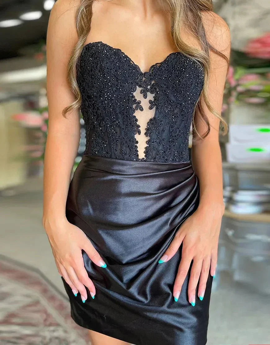 Sparkly Black Strapless Beaded Appliques Homecoming Dress