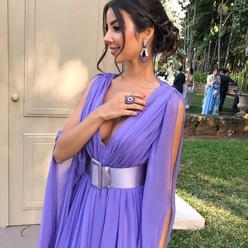 SSR0158,Sexy Deep V-Neck Chiffon A-Line Floor-Length Party Prom Dress
