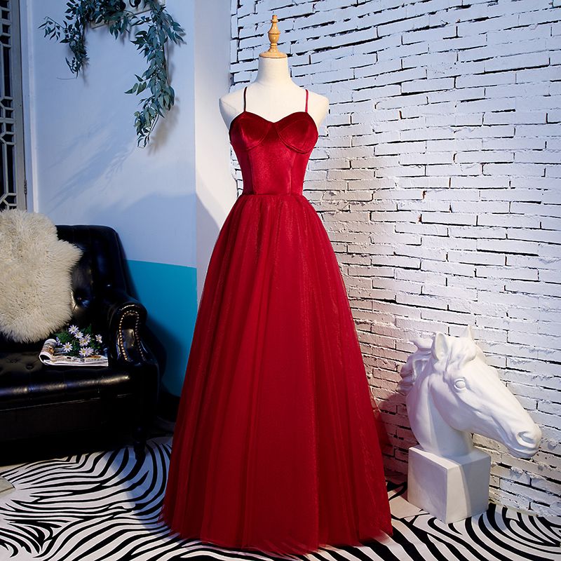 SSR0363,Red spaghetti straps long prom dresses tulle ball gown sweetheart long evening dress