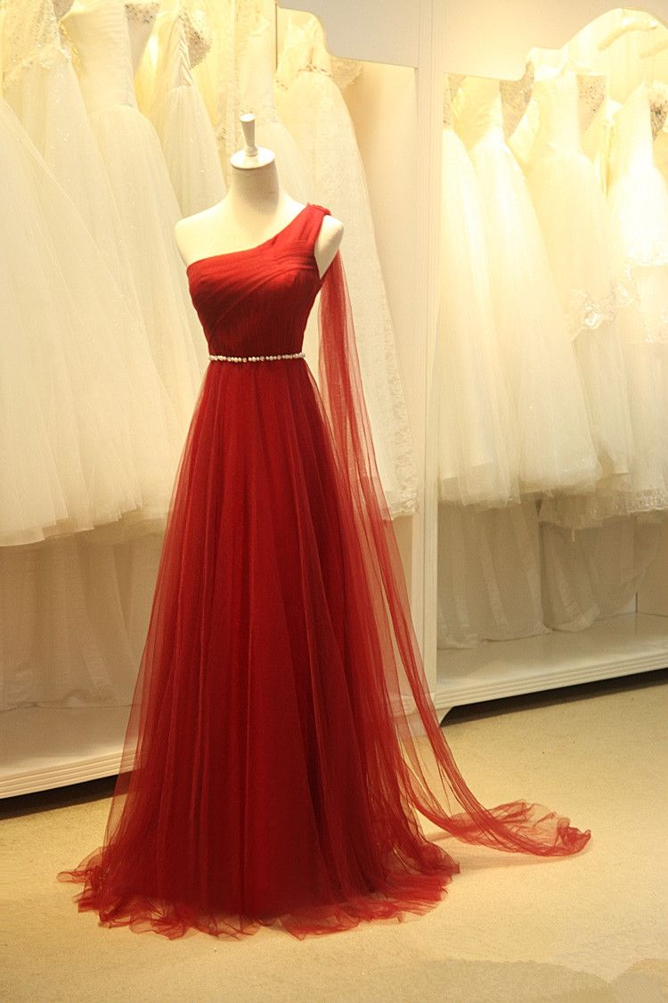 SSR0364,One shoulder tulle prom dresses beaded belt long prom dress evening formal gown with sash