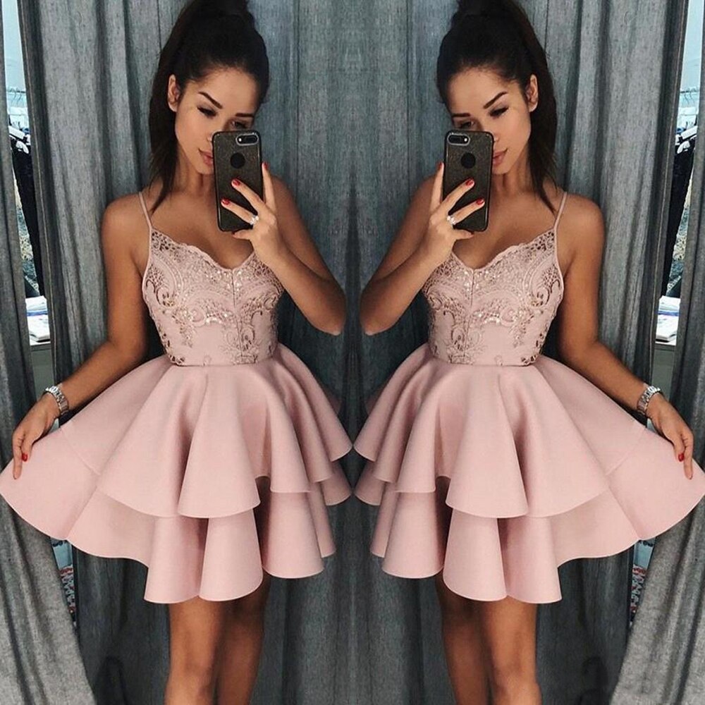 SSR0469,Pink Homecoming Dresses Spaghetti Straps Mini Prom Dress