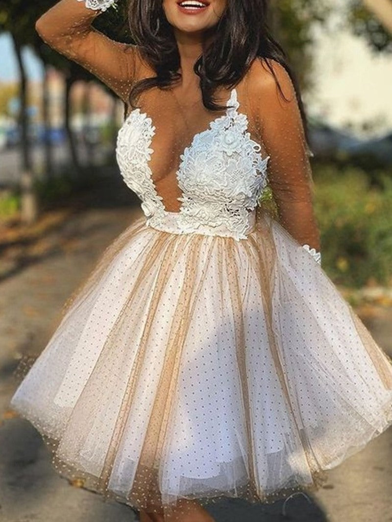 SSR0494,White Homecoming Dresses Lace Mini Hoco Dress School Dance Gown