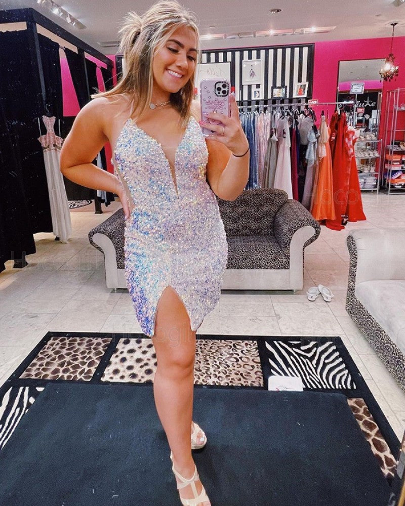 SSR0533,Short Prom Dresses Halter Mini Prom Dress