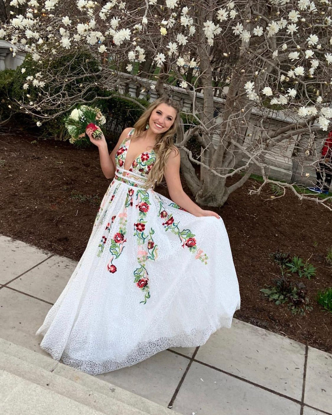 SSR0562,Elegant Lace A Line Backless Prom Dress with Handmade Flower Appliques