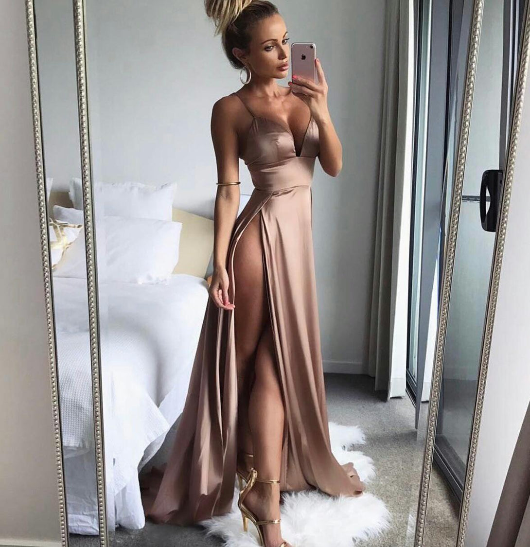 SSR0584,Spaghetti Straps Long Prom Dresses High Split Sexy Prom Dress