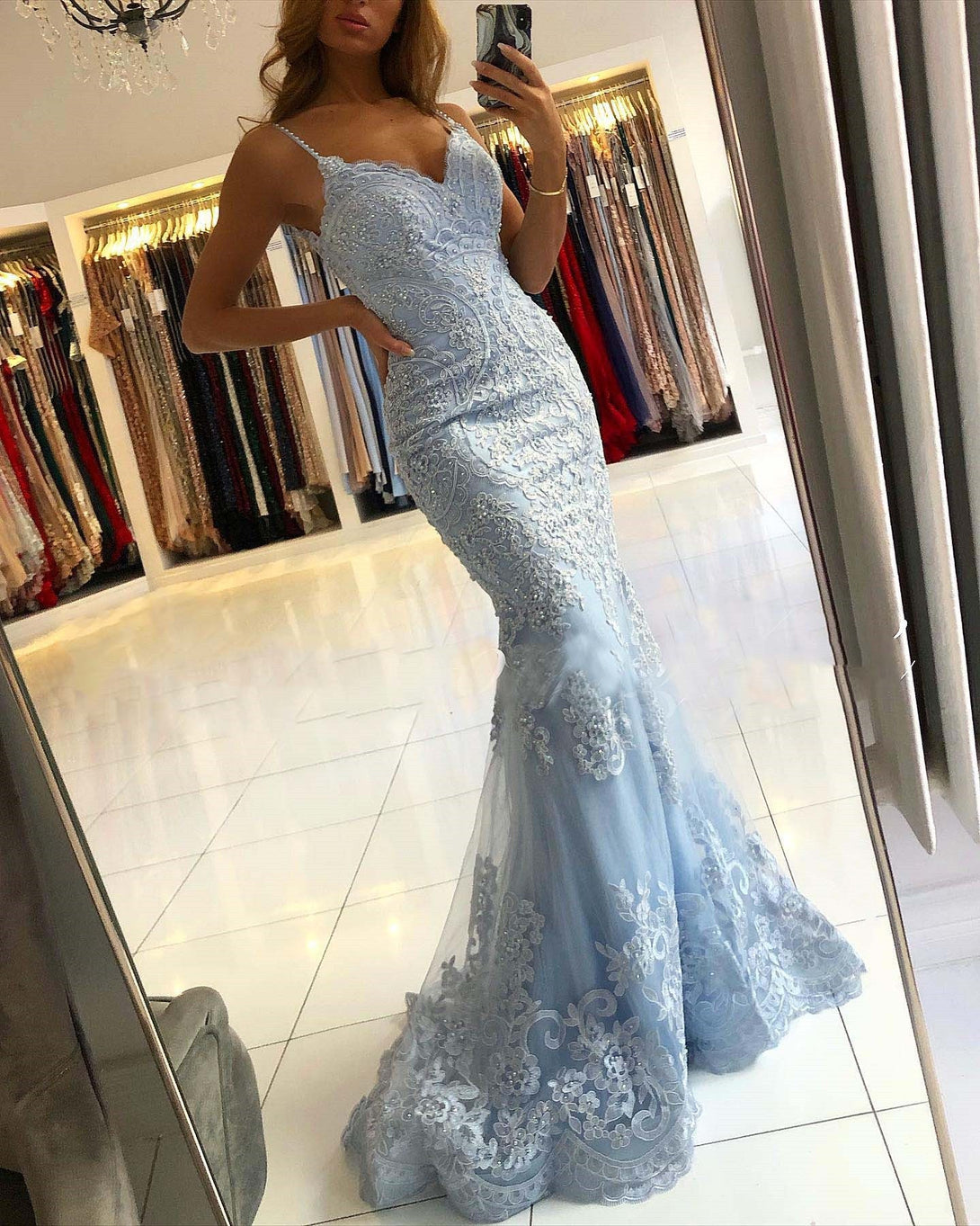 SSR0594,Luxury blue lace mermaid prom dress light blue evening party dresses