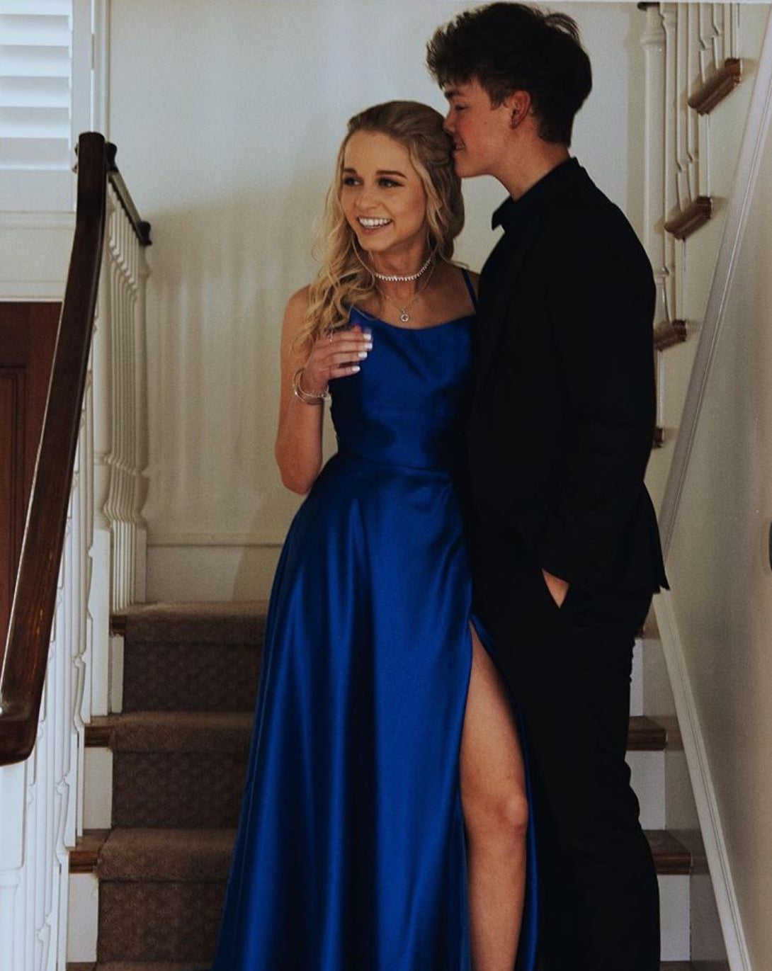 SSR0842,Elegant Backless Royal Blue Long Prom Dress Blue Satin Evening Dresses