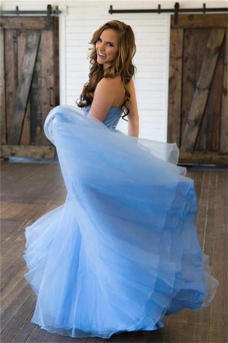 SSR0845,Sky blue prom dresses sweetheart tulle evening dresses sleeveless formal gown