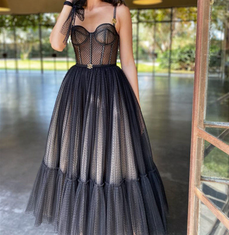 SSR1043,Black Homecoming Dresses A-Line Prom Dresses Ankle Length Evening Formal Gown