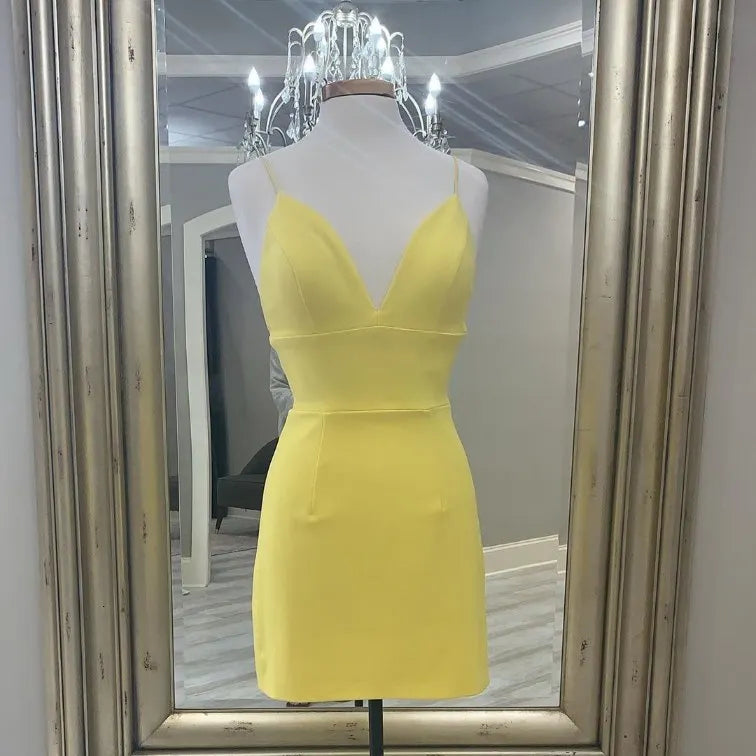 SSR1071,Simple homecoming dresses spaghetti straps v-neck short dress