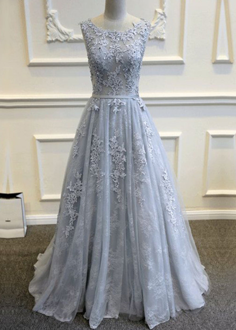 SSR1098,Grey lace v-back tulle prom dresses,long evening dress formal gown