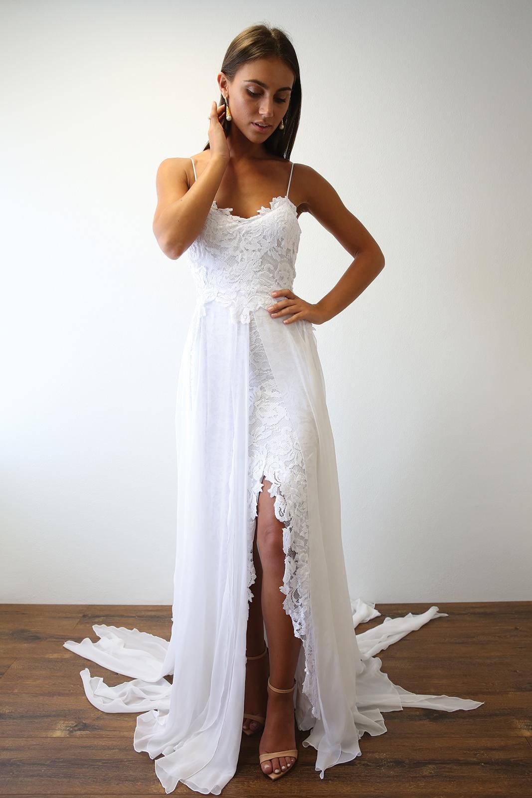 SSR1170,Elegant White Lace Chiffon Wedding Dresses,Spaghetti Straps Beach Wedding Gown,Custom Made Bridal Dresses