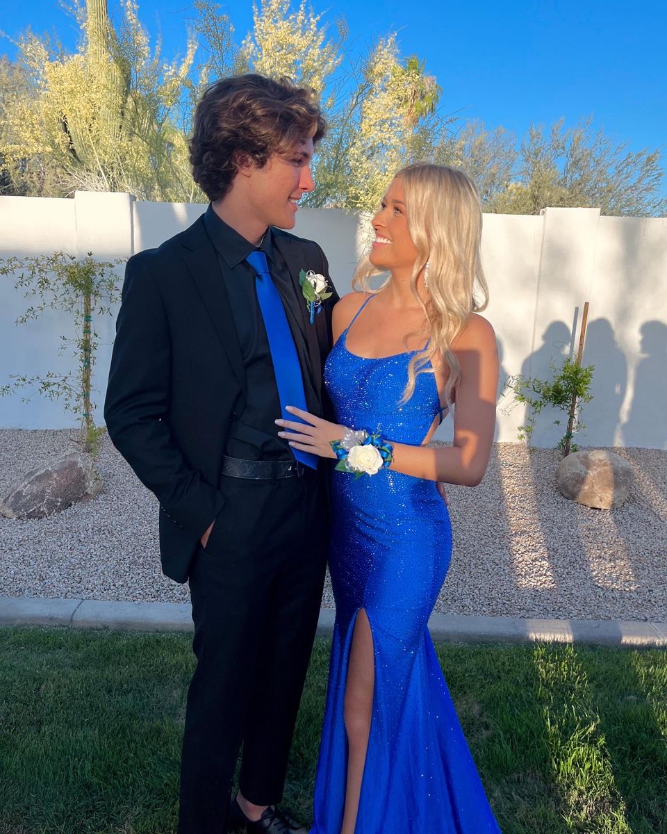 SSR1177,Sparkle Royal Blue Mermaid Long Prom Dresses,Side Slit Criss Cross Evening Dress