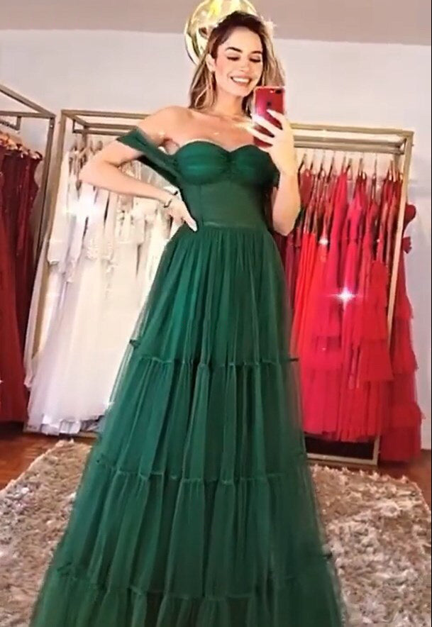 SSR1220,Red Prom Dress Off Shoulder Evening Dresses A Line Leg Split Tulle Formal Party Gown