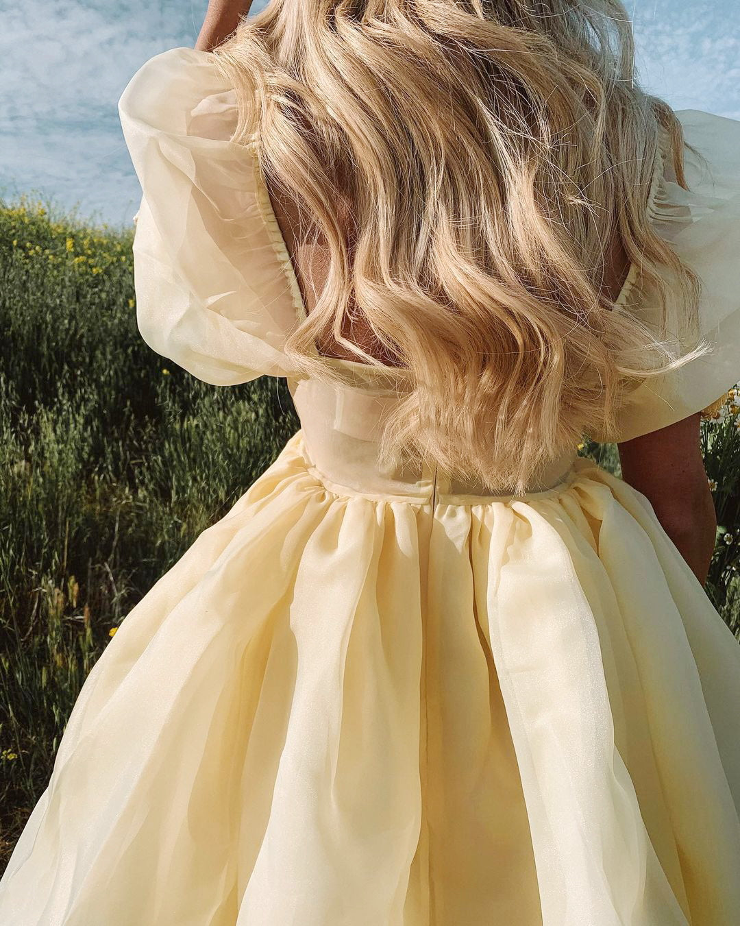 SSR1281,Pastel Yellow Organza Homecoming Dresses,Cute Hoco Dress