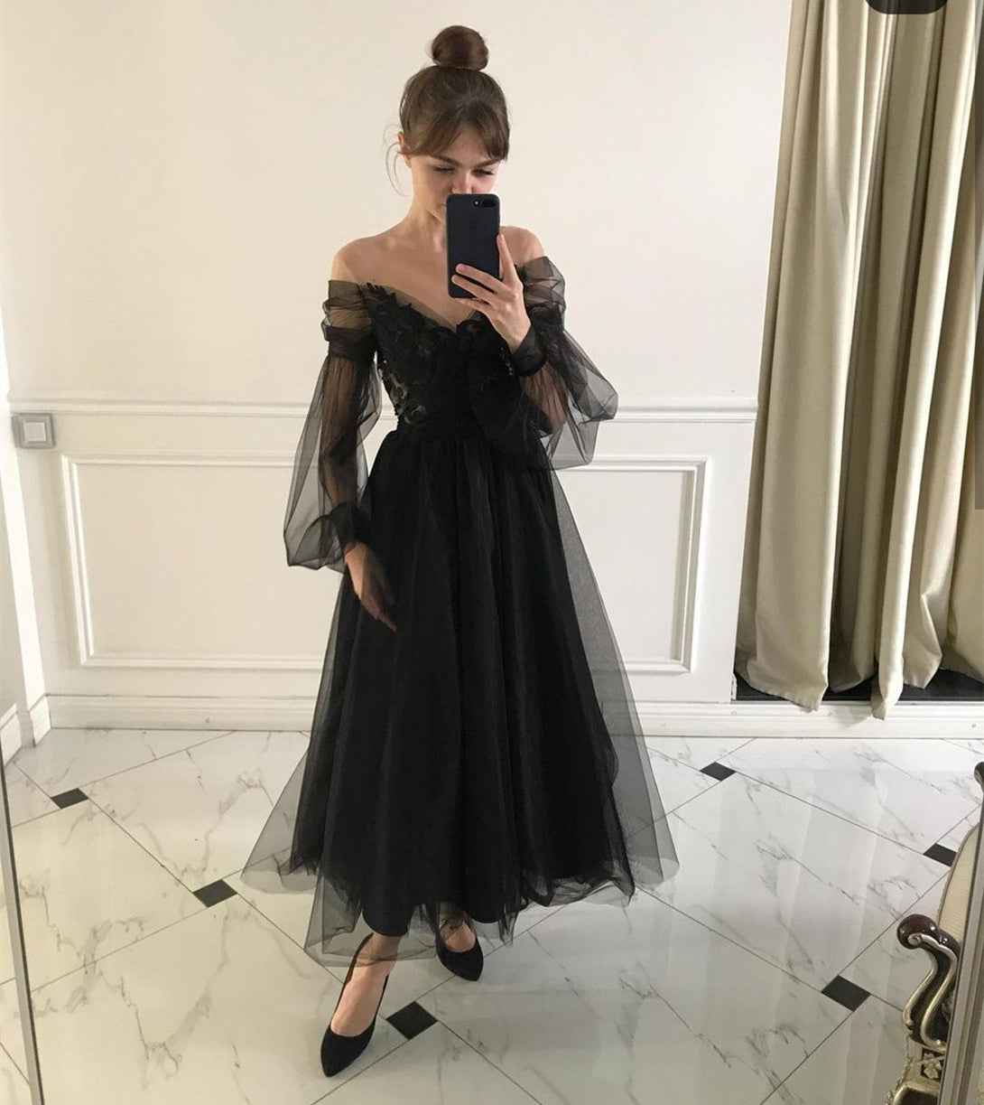 SSR1284,Black Tulle Prom Dresses,Off The Shoulder Evening Dresses,Black Homecoming Dress
