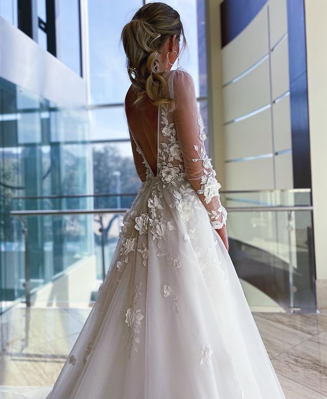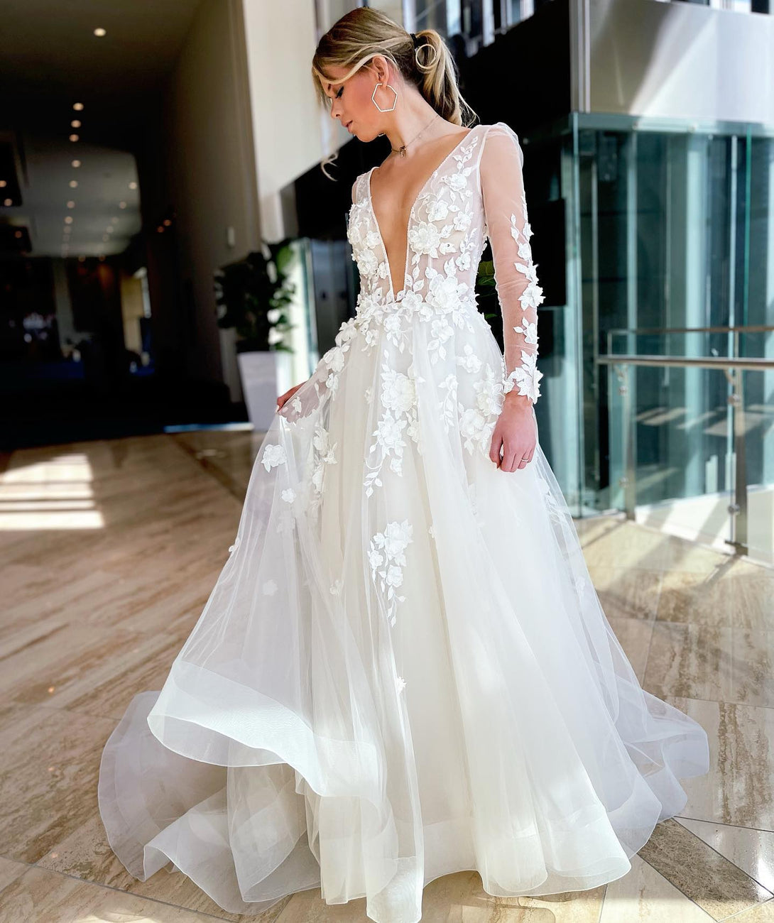 SSR1294,Gorgeous Long Sleeves V Neck 3D Lace Wedding Dresses
