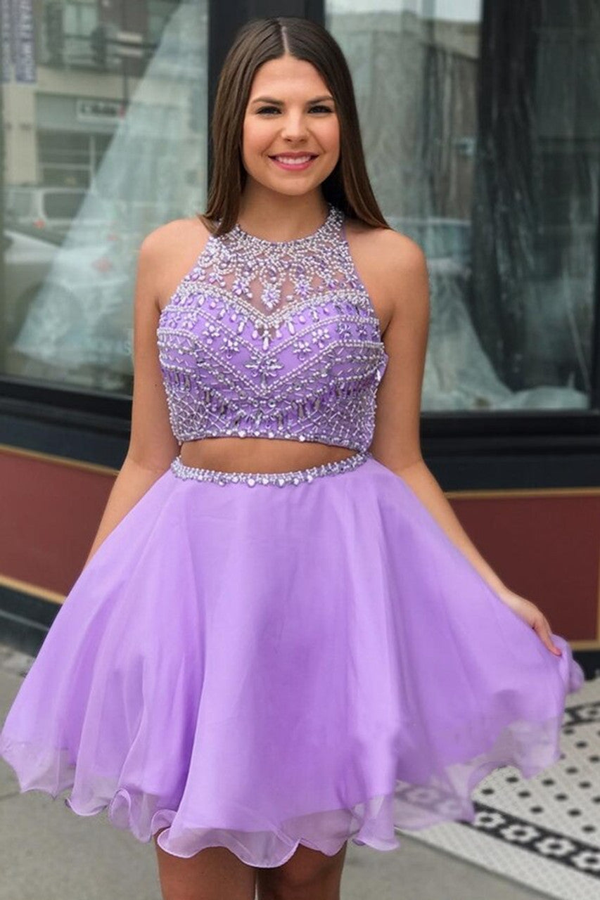 SSR1298,Lilac Homecoming Dresses,Two Pieces Cocktail Dress,Beading Organza Short Prom Dresses