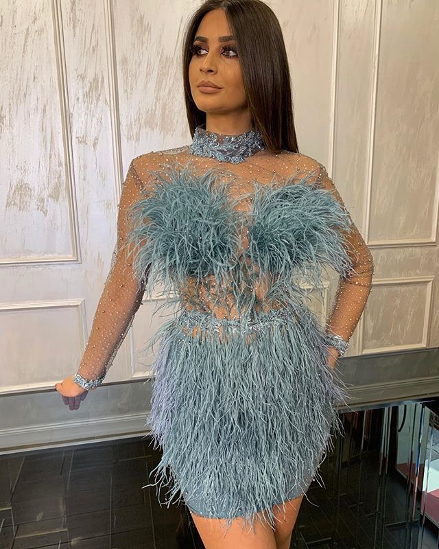 SSR1327,Luxury Feather Beaded Mini Homecoming Dresses