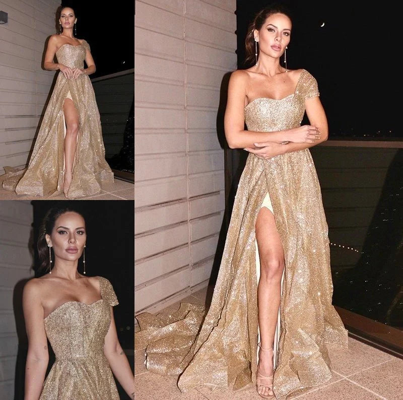 SSR1369,Ruched Sleeveless One-Shoulder A-Line/Princess Sweep/Brush Train Dresses