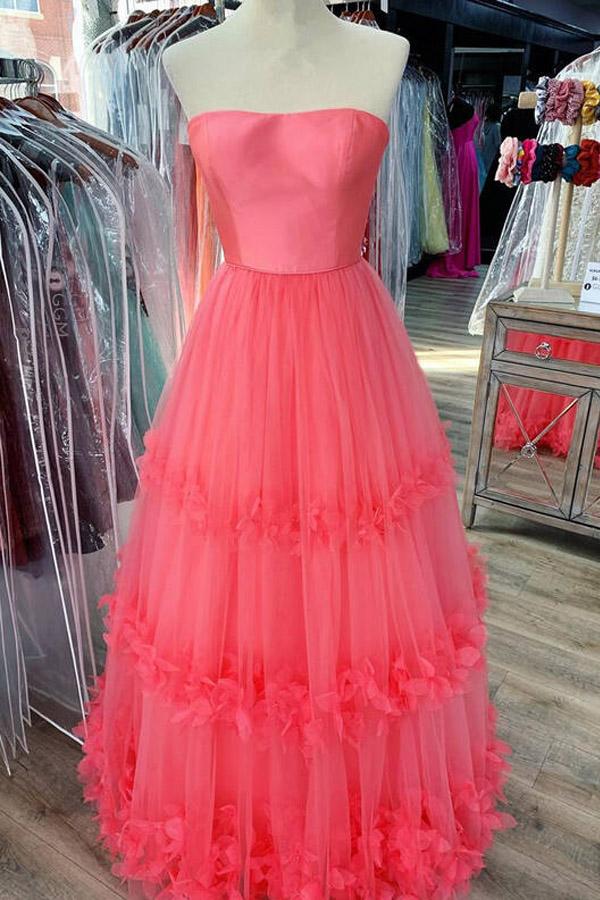 SSR1385,A Line Tulle Prom Dresses Strapless Evening Dress