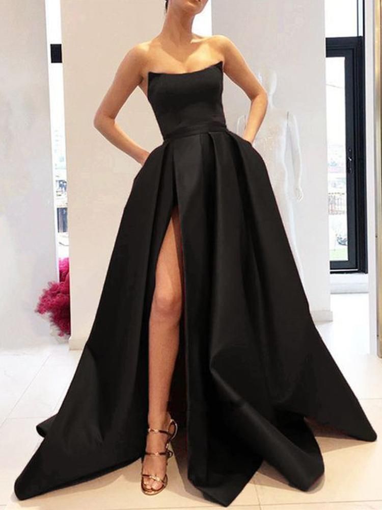 SSR1585,Sleeveless Black Satin Long Prom Evening Dresses