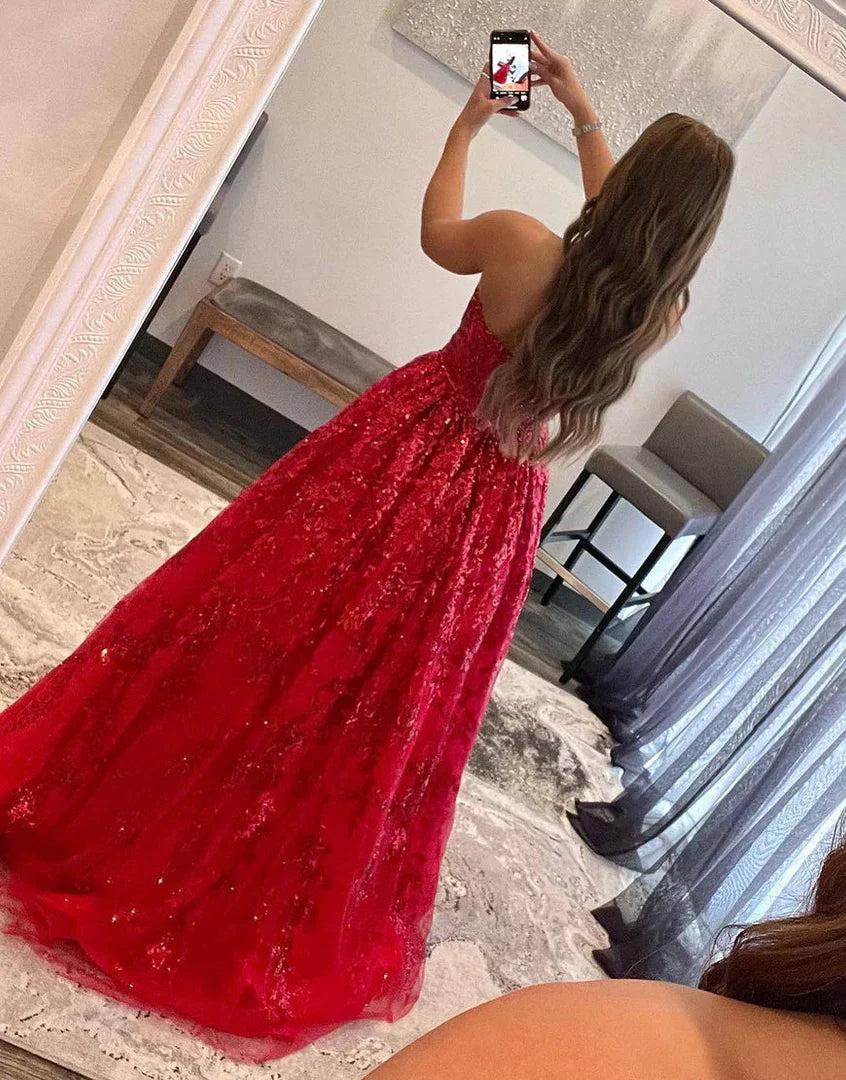 SSR1641,Luxury Red Lace Sequin Long Prom Evening Dresses,Full Length Party Gown