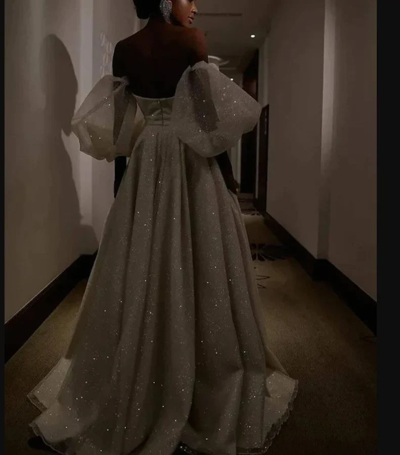 SSR1653,Sweetheart Prom Dress With Puffy Sleeves Sexy Luxurious Sparkle & Shine Evening Gown