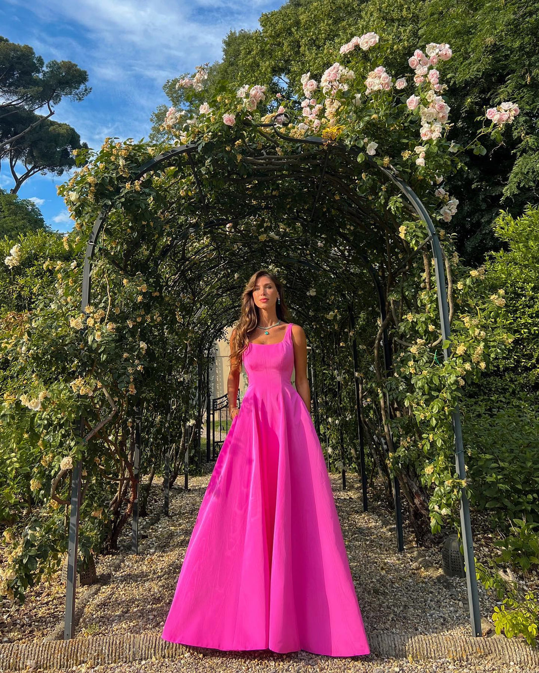 SSR1702,Elegant Hot Pink Long Prom Dresses, A-Line Evening Gown