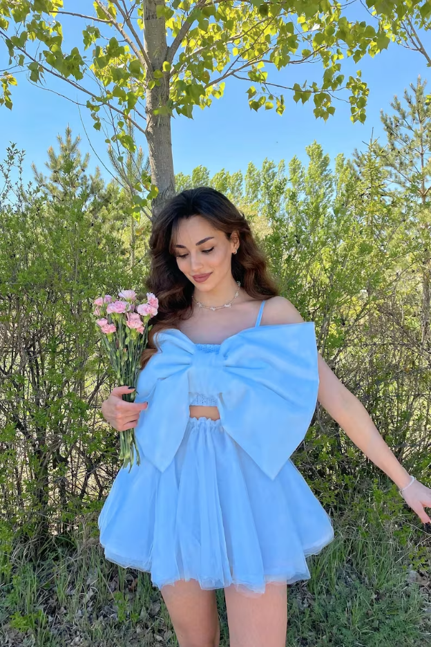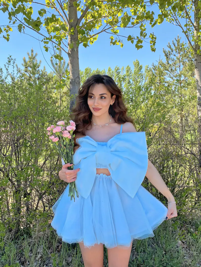 SSR1824,Sky Blue Chiffon Bowknot A-Line Homecoming Dresses, Cute Blue Homecoming Dress
