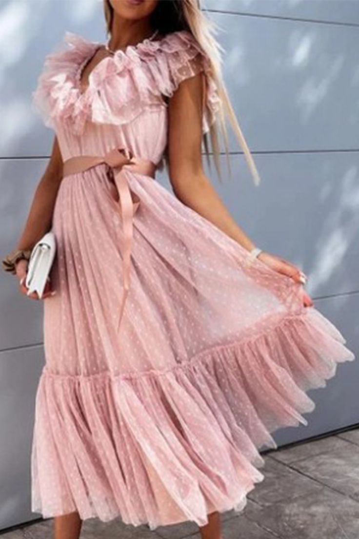 SSR1887,Cute White Dots A-Line Ruffles Homecoming Dresses