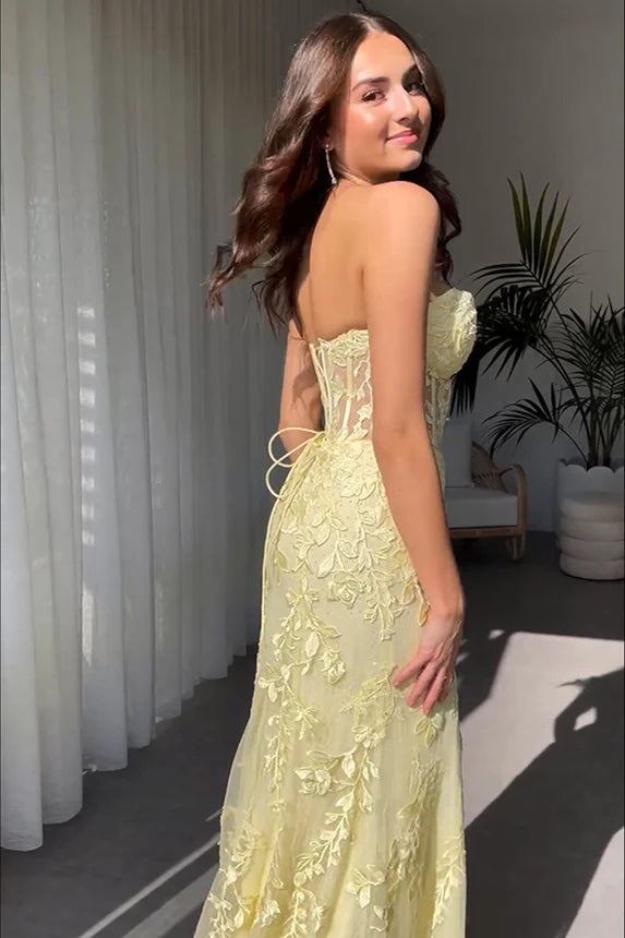 Strapless Black Corset Lace Long Prom Dress with Slit,SSR1166